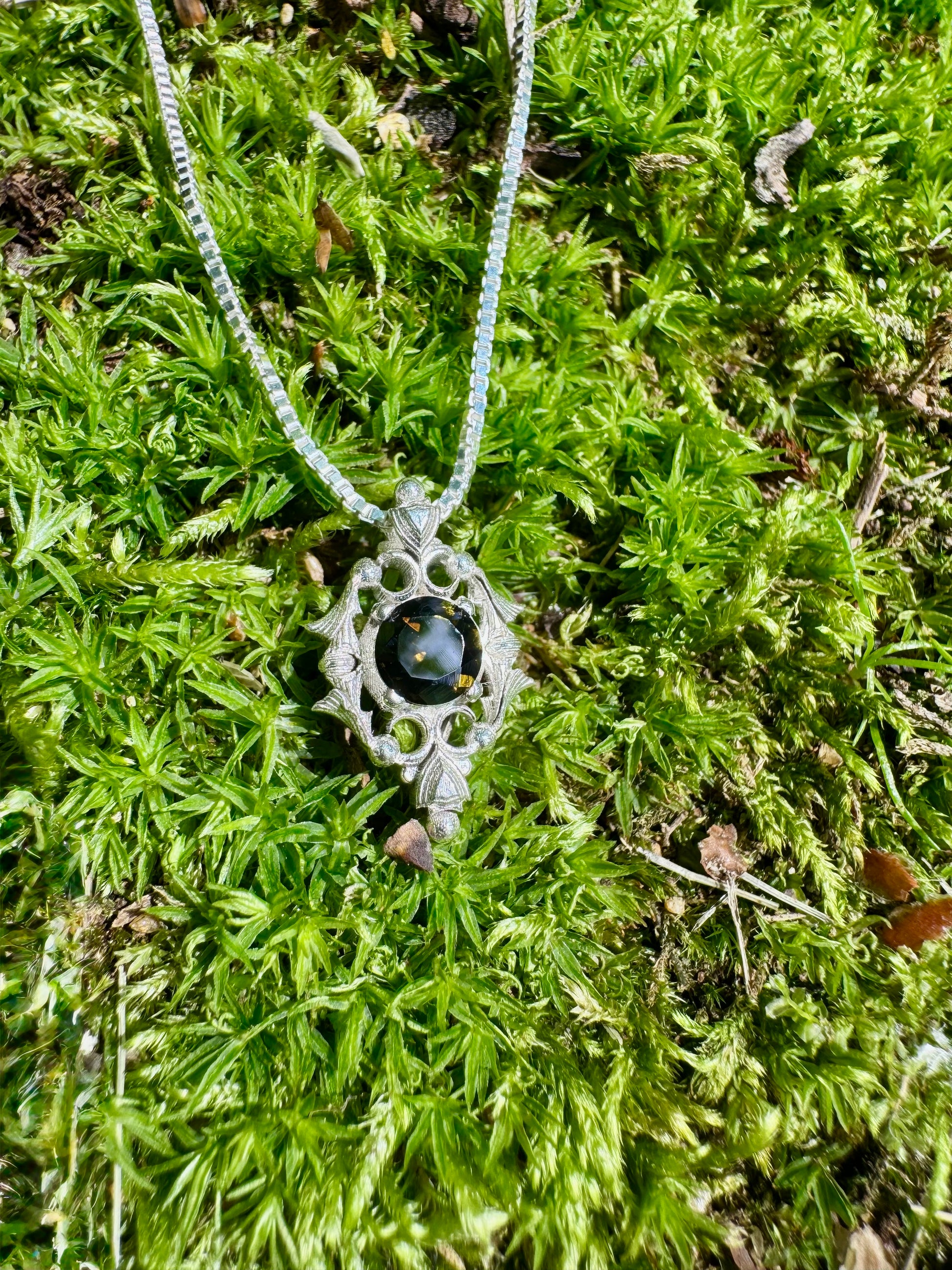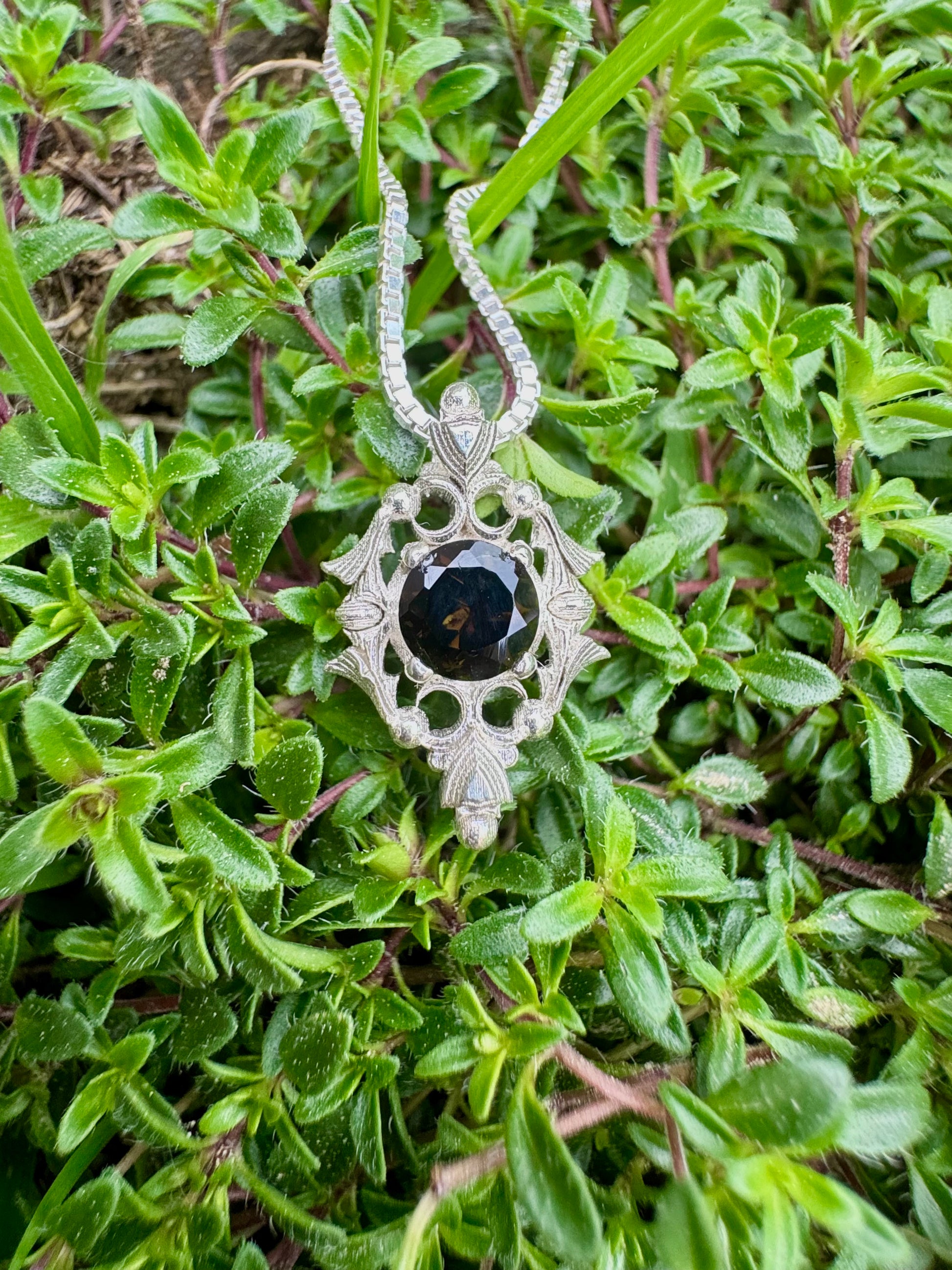 Inspired by the elegance of a larger design crafted last year,                                              The "La Piccola Principessa" Line captures the beauty of expertly faceted gemstones in a refined, solid, yet delicate form. This pendant features a Deep Green Dravite .45-.5ct Tourmaline, meticulously set in sterling silver, blending nature’s raw brilliance with masterful craftsmanship.