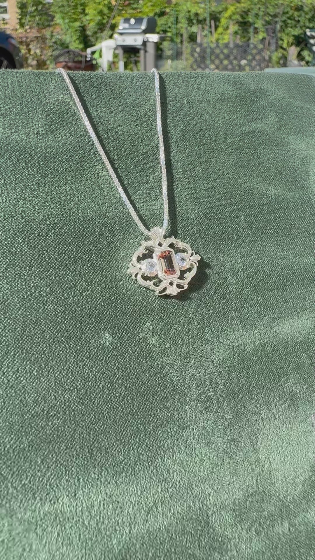 Set in ornate sterling silver, the design highlights intricate scrollwork that frames the stones with elegance and balance. The result is a piece that feels both timeless and artistic, perfect for collectors who appreciate craftsmanship and natural wonder.